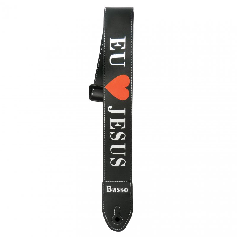 Correia GOSPEL em sintético preto com serigrafia "EU AMO JESUS".