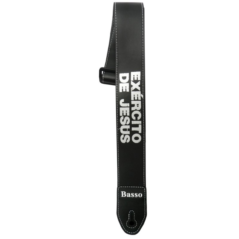 Correia em sintético preto com serigrafia de "EXÉRCITO DE JESUS" .